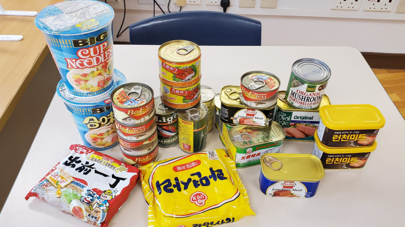 | RiceNoodles, pastaCanned foode.g. luncheon meat, beans in tomato sauce, sardines, spicy diced pork, dace in black bean sauce, etc. that can constitute a full meal without requiring other food | Non-primary food used for nutritional supplements and fiberse.g. oats, canned fruits, milk powder, condensed milk, biscuits, canned soup, etc. |