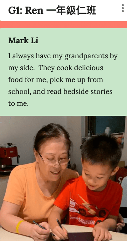 Monica LO – Sun, 6 Mar 2022, 4:44 PM: From Davonna: I am really happy that I was given an opportunity to participate in this elderly appreciation competition, and I was chosen as a finalist. I am showing the virtues Xiao and Ai because this activity shows respect to the elderly (Xiao), and it also shows that I am very passionate about drawing (Ai). I think the gift will put a big smile on the elderly’s face. Making others happy makes me feel really happy too!! I want to make similar gifts for my grandparents in Malaysia and Hong Kong because I really miss them.