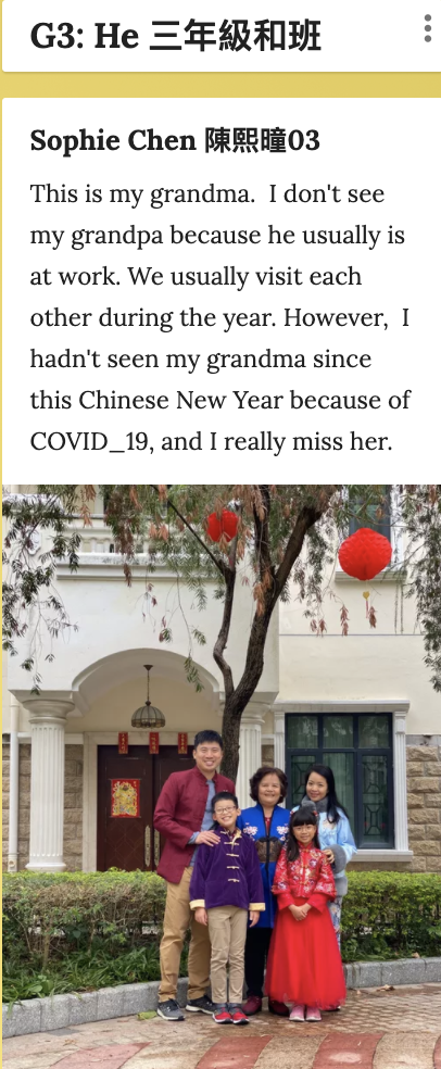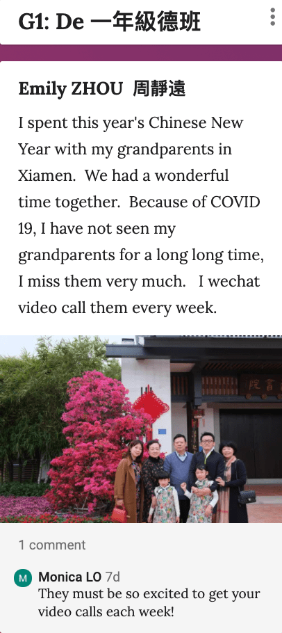 Gabby 龔涵湘 GONG – Fri, 20 Nov 2020, 7:17 PM: Thank you, Ms. Monica, for giving us this opportunity. I really enjoyed decorating the bags for the elderly. This activity had us use our creative skill, learning more about Hongkong culture, and we also learnt about stamps. Thank you for hosting this activity, I really hope there will be more similar things just like this one sometime soon.
